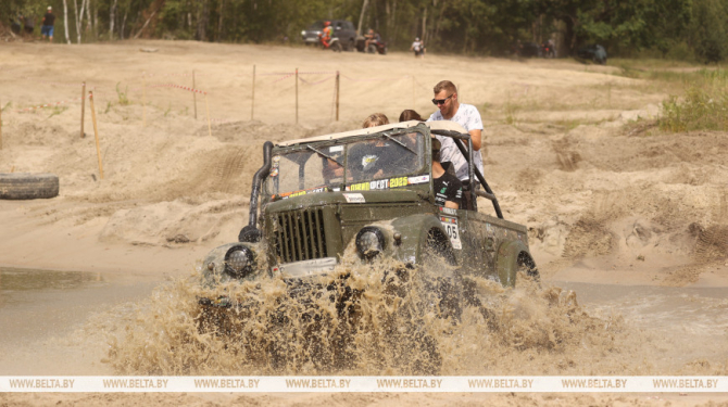 13 ліпеня, Мінск /Кар. БЕЛТА/. Дынамічна праходзіць заключны дзень "Джэп-фэсту 2025" у Брэсцкім раёне. Гледачы могуць паназіраць за скорасным заездам, парнымі заездамі на выбыванне і бітвай монстраў". У мерапрыемстве прымаюць удзел каля 100 экіпажаў з Беларусі і Расіі.-0-