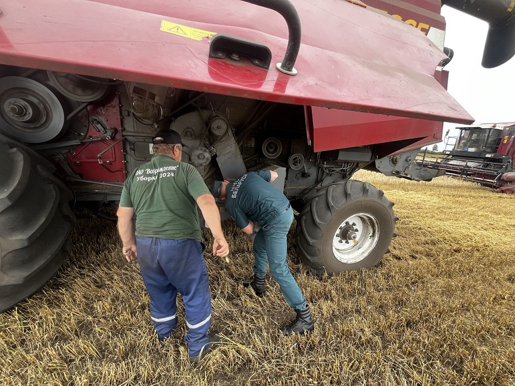 С работниками, задействованными в уборке зерновых, провели беседы по обеспечению безопасных условий работы, о действиях в случае возникновения чрезвычайной ситуации, а также проверили умение пользоваться первичными средствами пожаротушения.