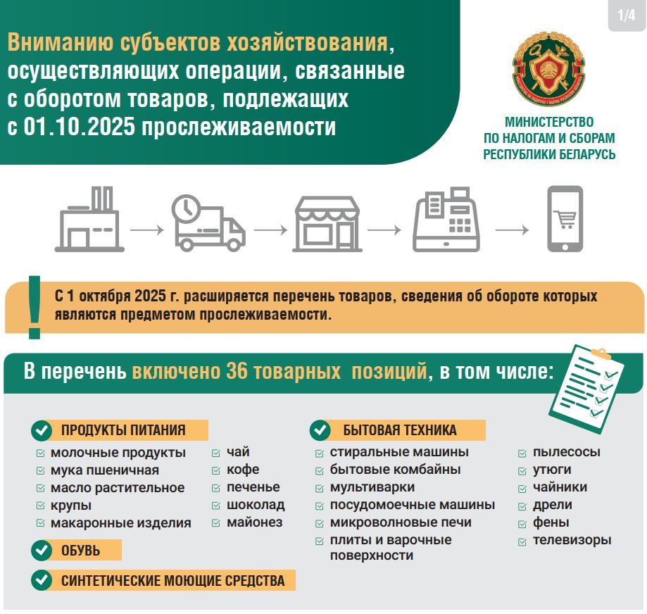 Вниманию субъектов хозяйствования, осуществляющих операции, связанные с оборотом товаров, подлежащих с 01.10.2025 прослеживаемости