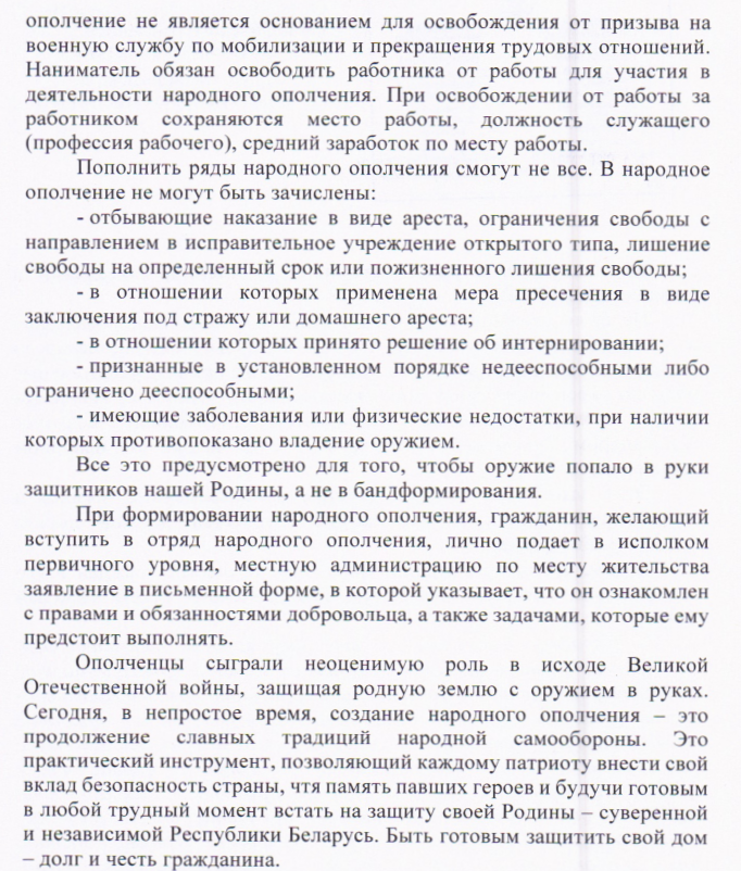 Как вступить в ряды народного ополчения, рассказали в Ганцевичском РОВД
